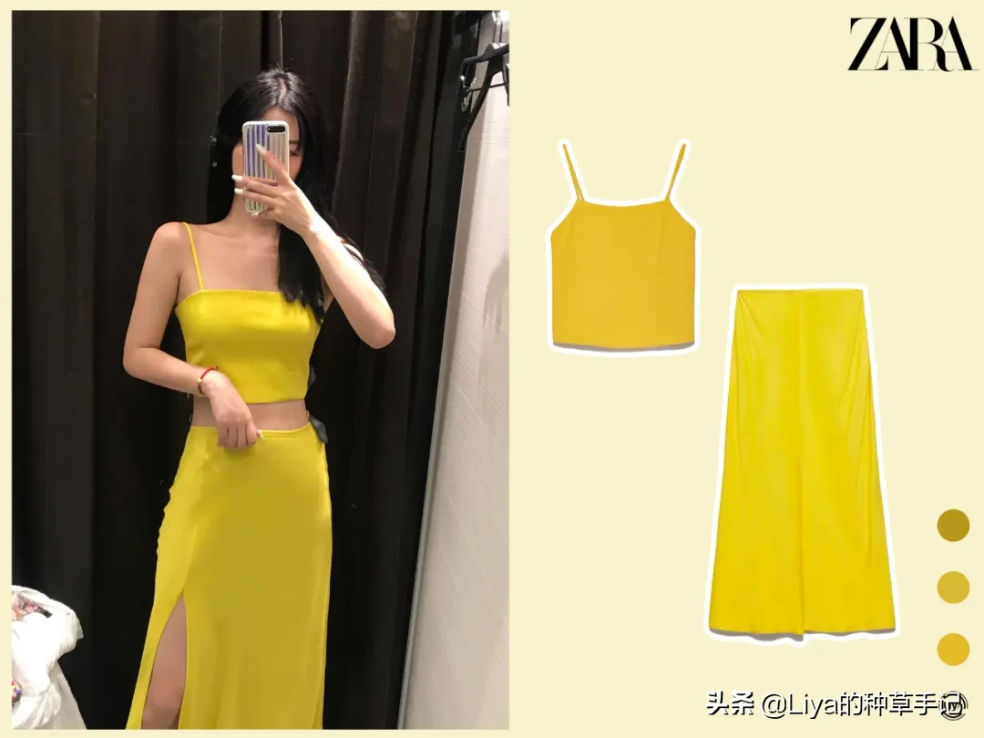 色彩感吊带就是能玩出很多花样,我用一件黄色吊带搭高腰开叉半身裙,妩媚感十足,同色系look更是让你瞬间成为人群焦点。